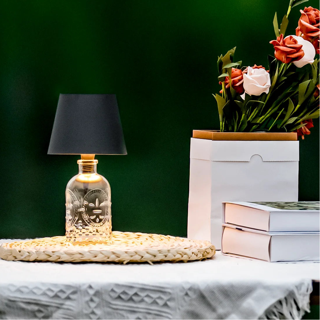 Instead of relying on fixed lamps or overhead lighting, this bottle lamp offers a portable option you can adjust to your space and activity.